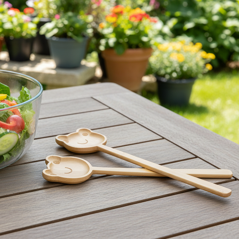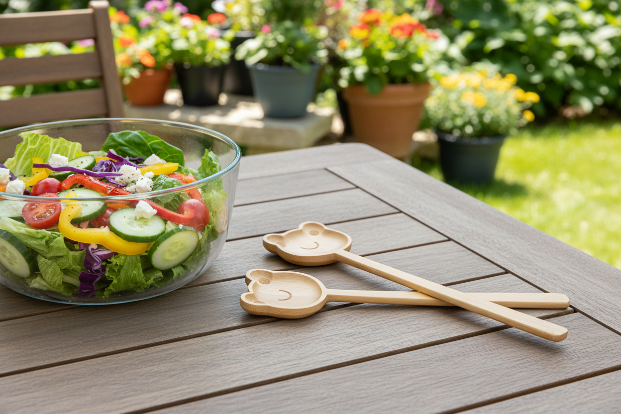Gi serveringen et lekent preg med dette salatbestikket i bambus med froskemotiv. Laget av miljøvennlig bambus og designet for både funksjon og stil. Perfekt til salater, pastaretter og servering – og en sjarmerende detalj på ethvert kjøkken.