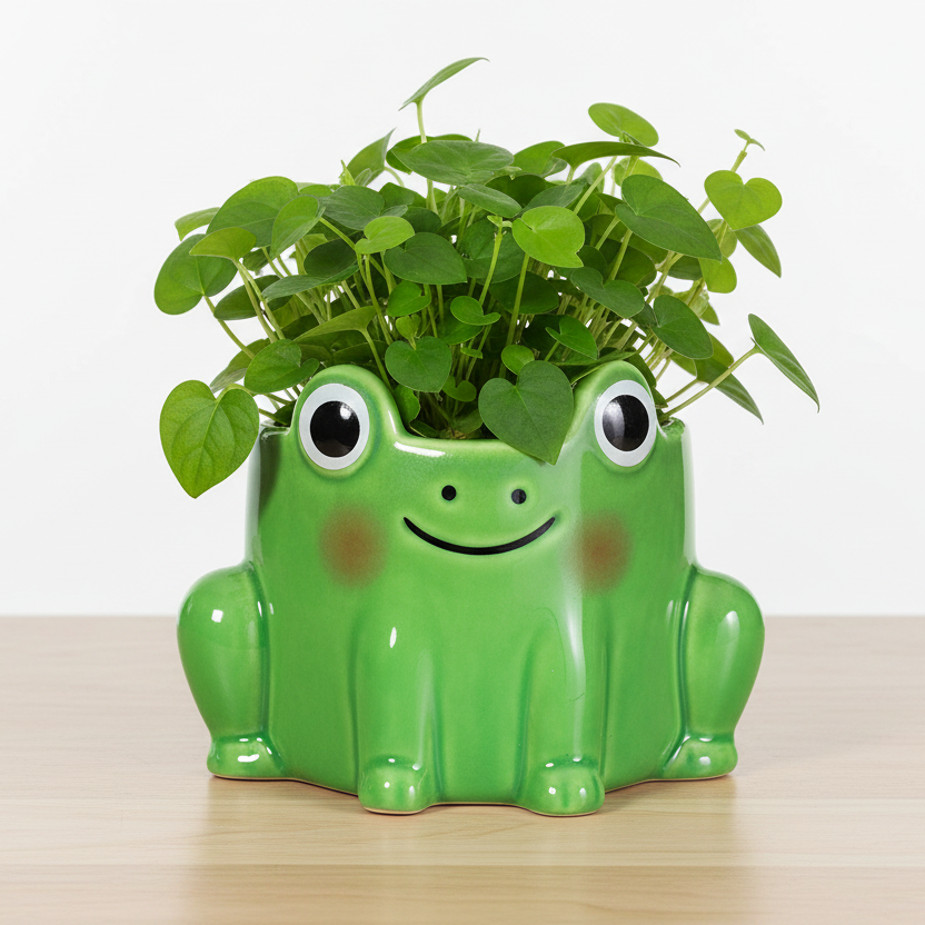 Gi plantene dine et lekent og sjarmerende hjem med denne lille blomsterpotten formet som en frosk. Den dekorative potten er perfekt til små planter, stiklinger eller sukkulenter, og tilfører et personlig og humoristisk preg til interiøret.