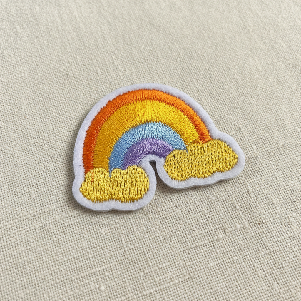 Søt, liten orange regnbue. Strykelapp til klærne.  En rimelig og morsom måte å dekke hull i klærne. Lett å stryke på.