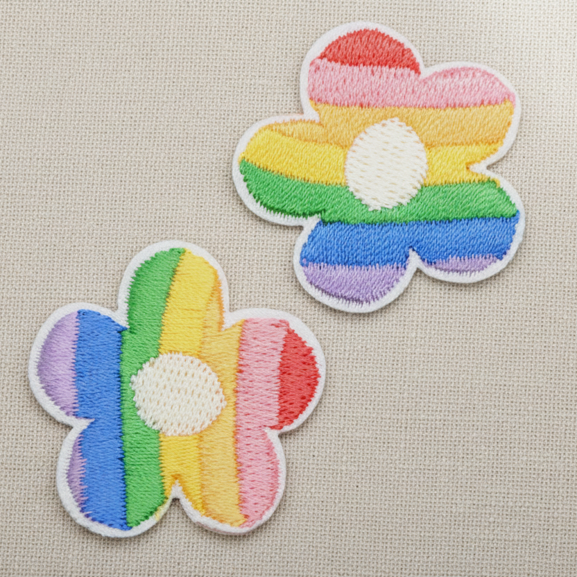 2 pakning Lite strykemerke med motiv av et regnbuehjerte, perfekt for å dekorere eller reparere klær og tekstiler. Dette merket festes enkelt med strykejern og gir et unikt, personlig preg på jakker, vesker, ryggsekker eller andre tekstiler.